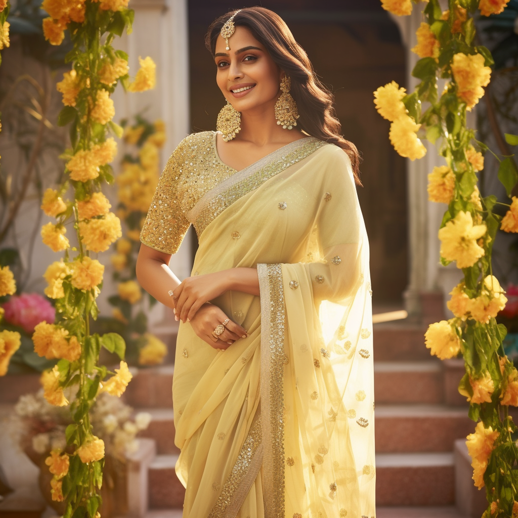 Beige Woven Saree With Delicate Hand Work Detailing